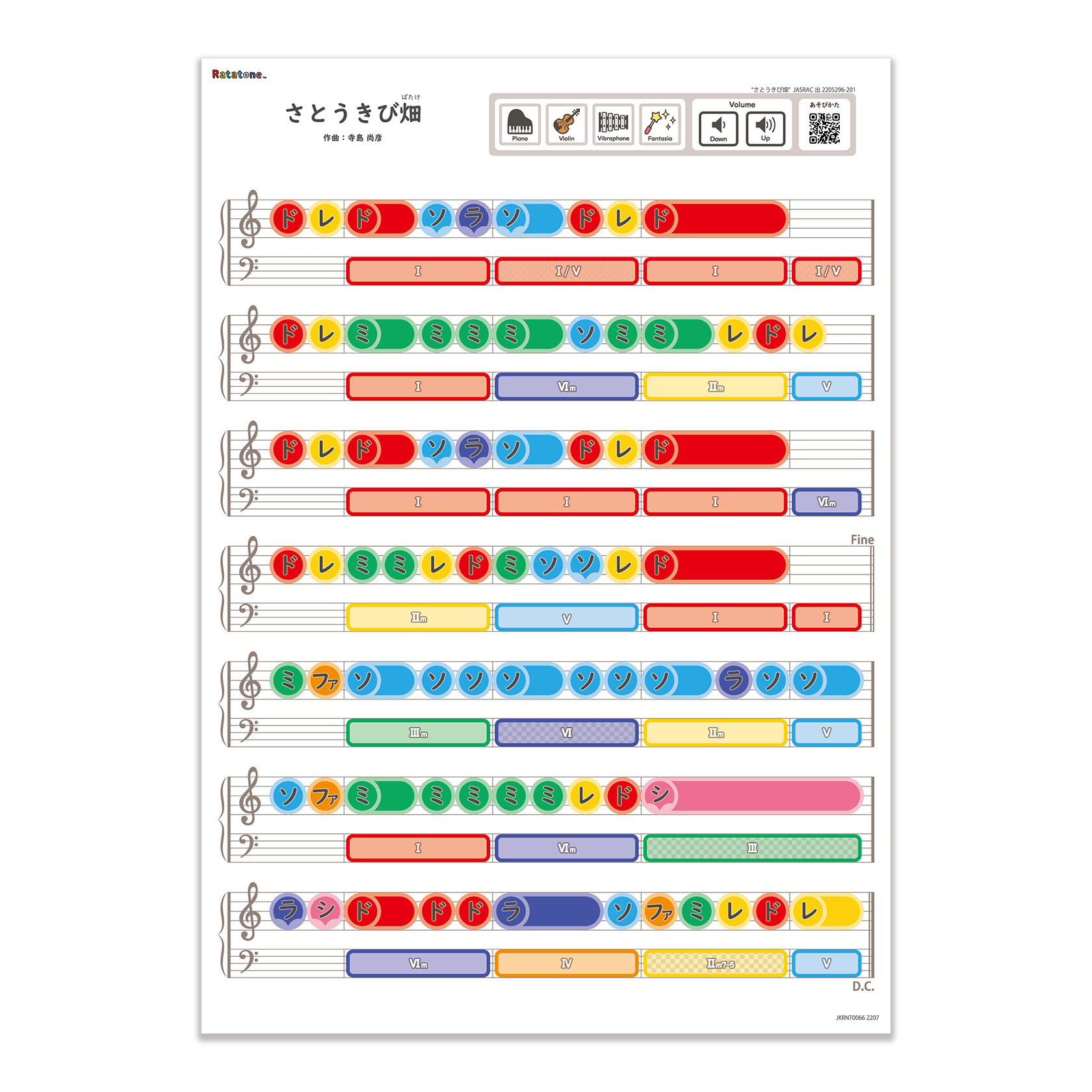 コードは1625と呼ばれる循環コードで構成されています。さとうきび畑に「ざわわざわわ」と風が吹く様子が音楽の中に表現されています。